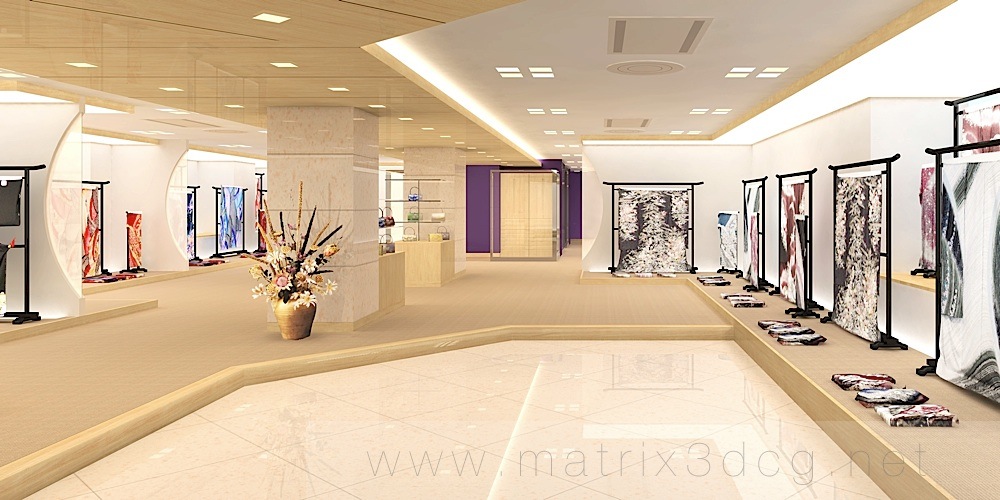 インテリアパース:和装・着物ショップ店内 和装・きものショップの設計プレゼン用インテリアパース。明るくモダンな店内を表現しました。複数のアングルを制作できるよう、写真合成ではなく形状を配置しています。もちろん空間内を歩きまわるウォークスルーアニメーションにも対応できます。 2011年1月29日 投稿先 CGショールーム インテリア ショップ ← 過去の投稿へ 次の投稿へ →